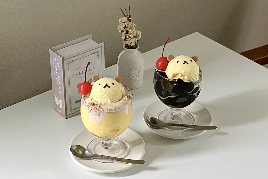 シロクマの形のモンブランサンデー。コーヒーサンデーも。