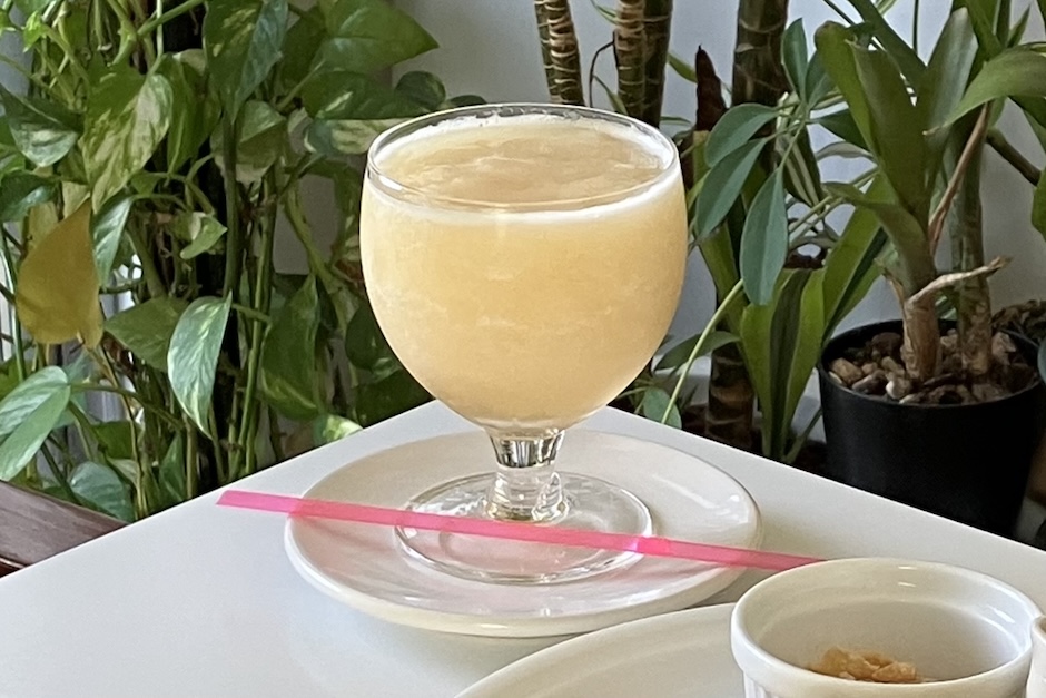 なめらかなテクスチャーのマンゴースムージー。