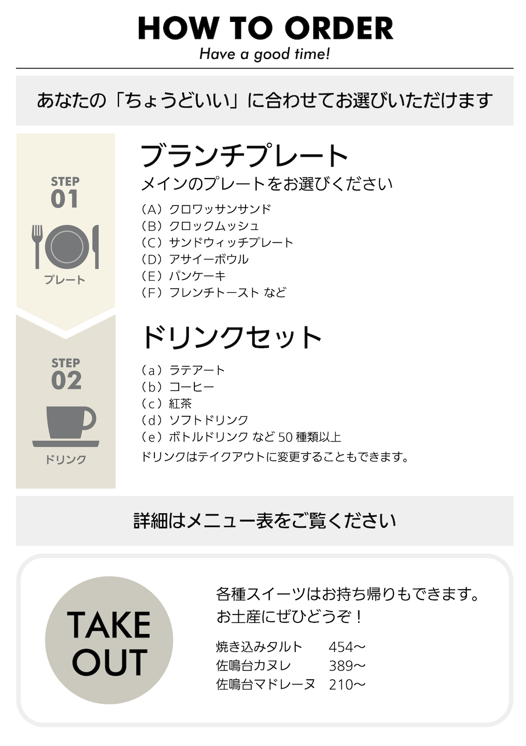 ブランチはドリンクセットがおすすめ。ドリンクは30種類以上の中から選べます。