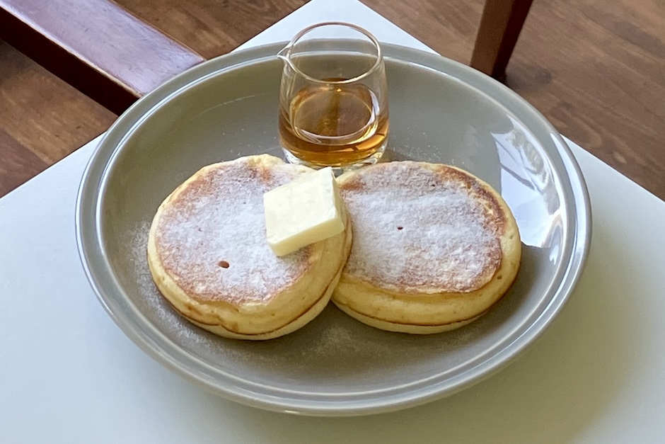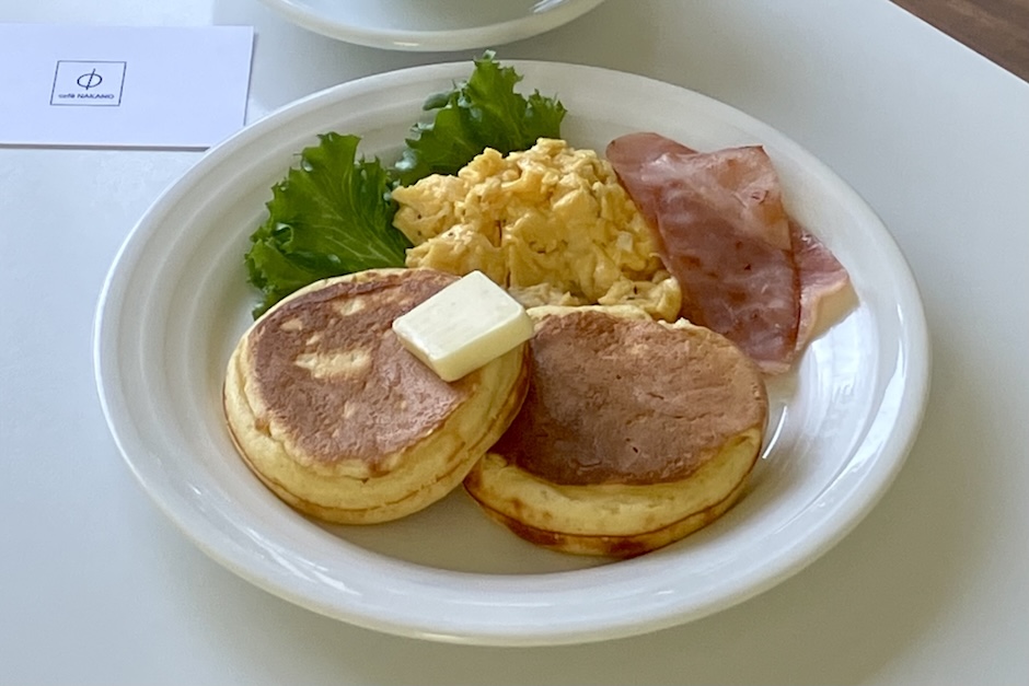 もっちりパンケーキとベーコン、スクランブルエッグ。
