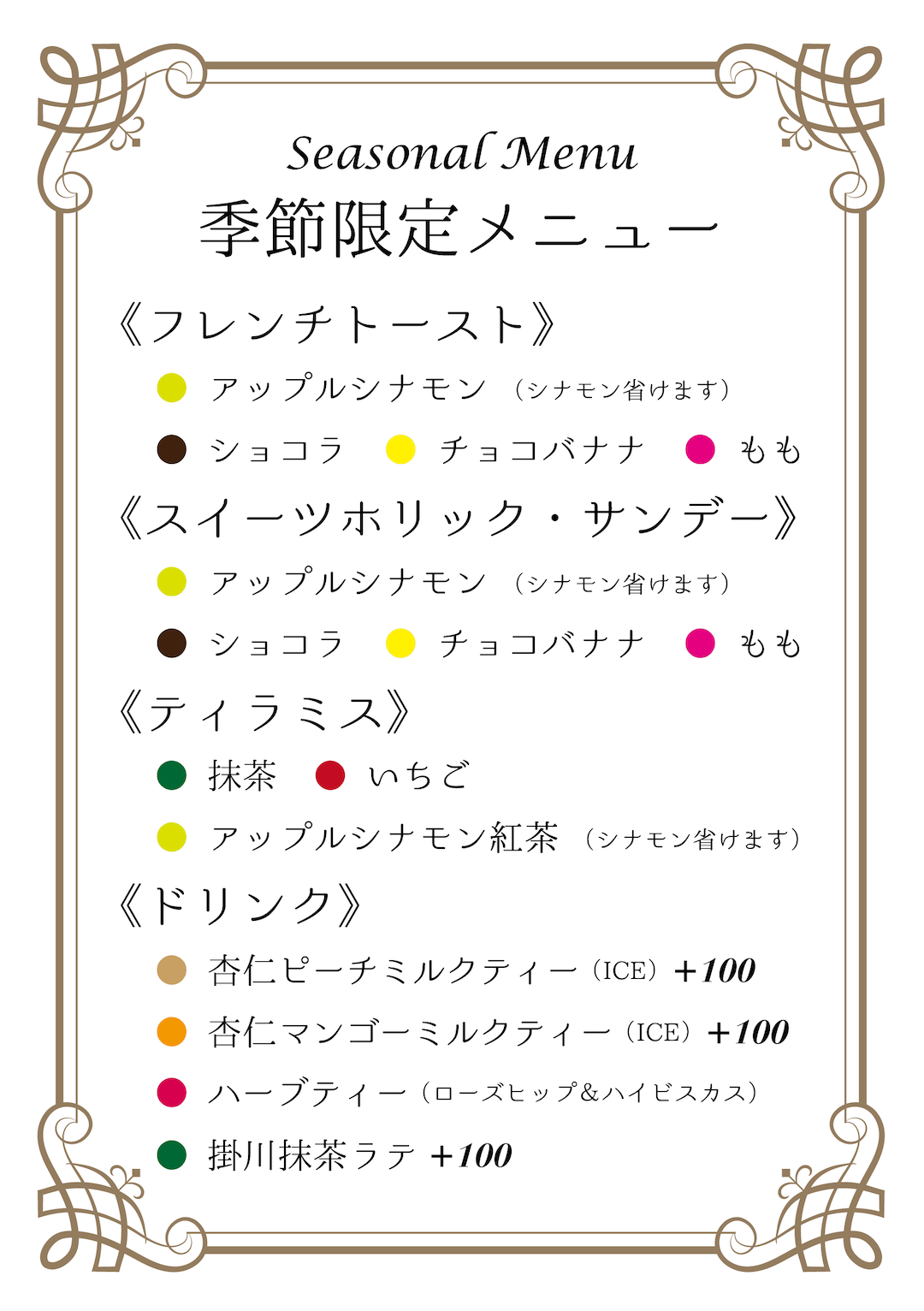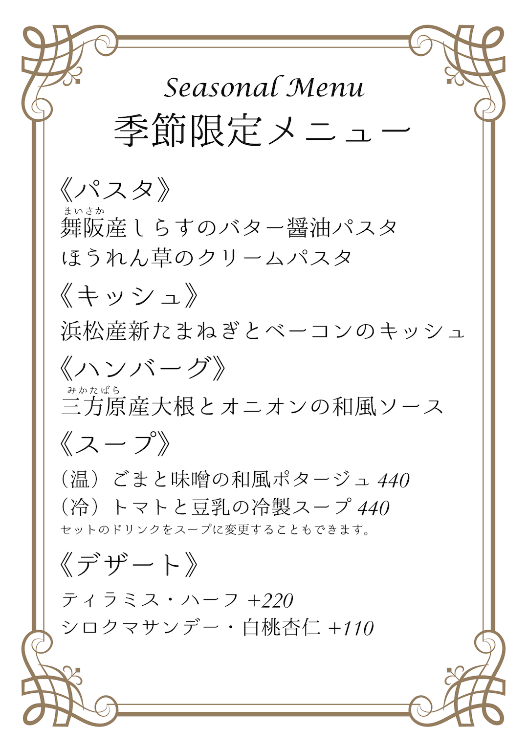 わくわくする季節限定メニューをご用意しています。さあ、カフェ ナカノ(cafe NAKANO)にいつ行こう?