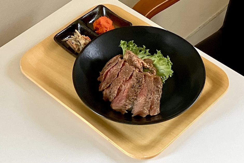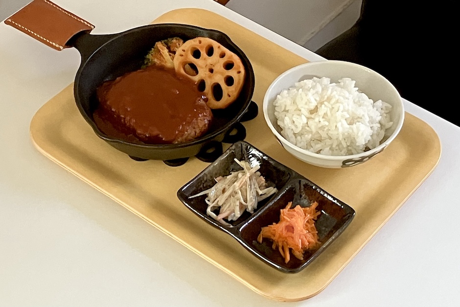 デミソースのハンバーグ。ごはんとおかず、デリ2品のプレート。