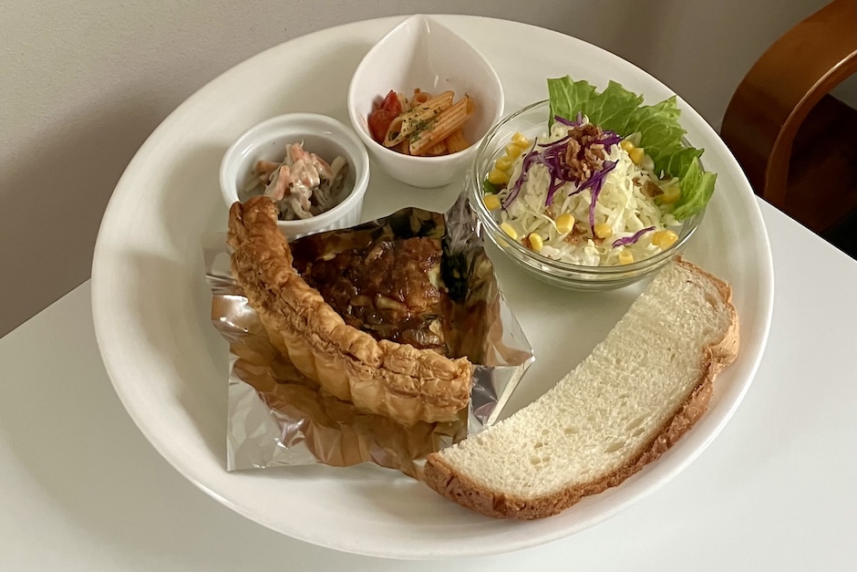 サクふわのキッシュ。キッシュとデリ2品、サラダと自家製パンのプレート。