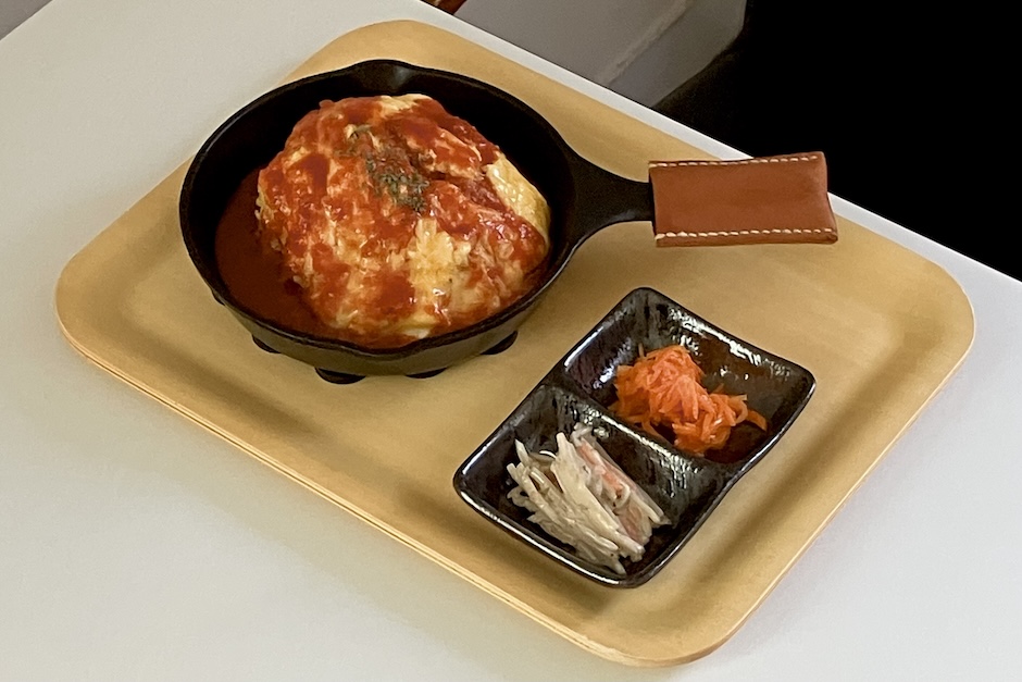 ふわふわたまごのオムライス。オムライスとデリ2品のプレート。