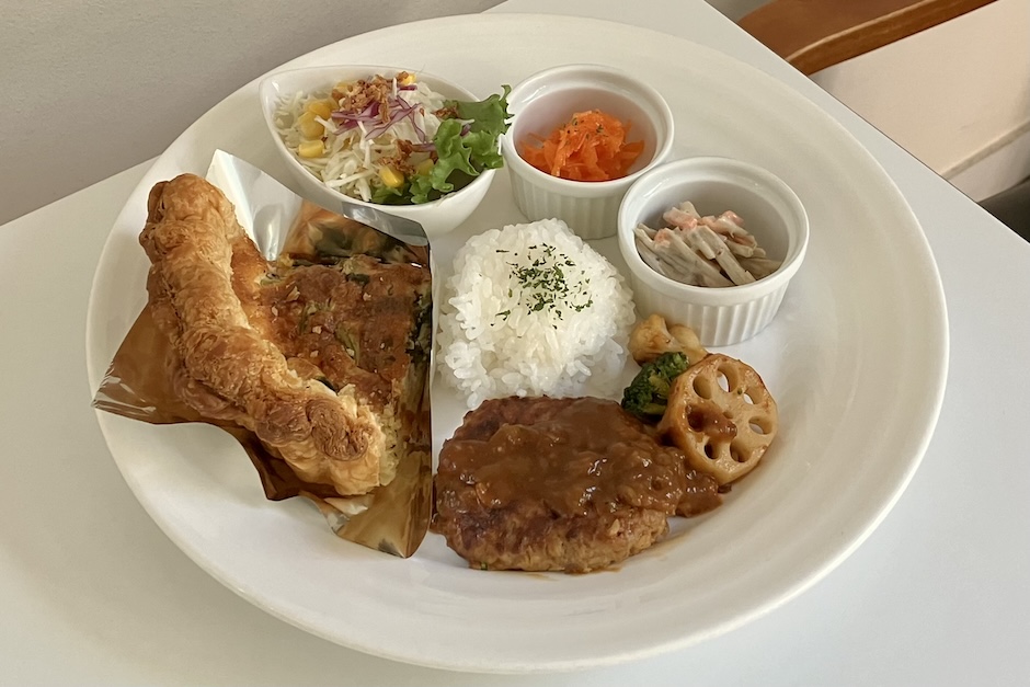 メインは、キッシュ、ごはん、ハンバーグ、パスタから2品選べます。