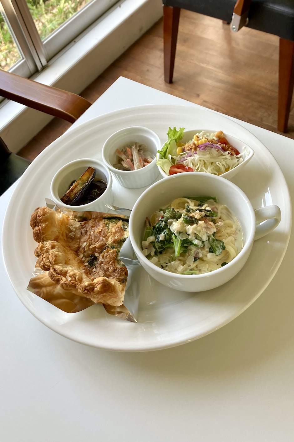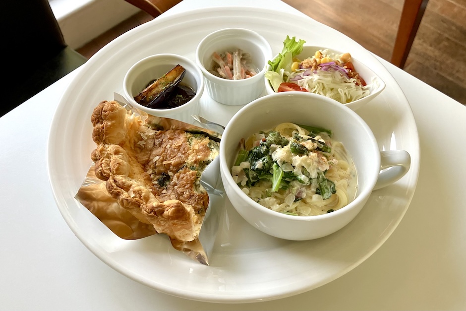 メインは、キッシュ、ドライカレー、ハンバーグ、パスタから2品選べます。